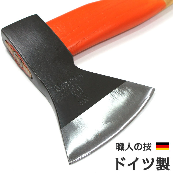 ドイツ製で高品質の鍛造斧。高品質な鋼材を使用。切れ味の持続もよく、かつ再研磨が容易。