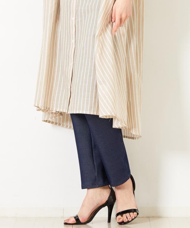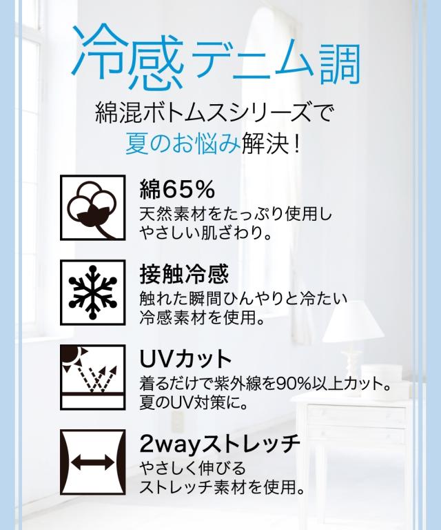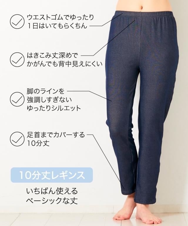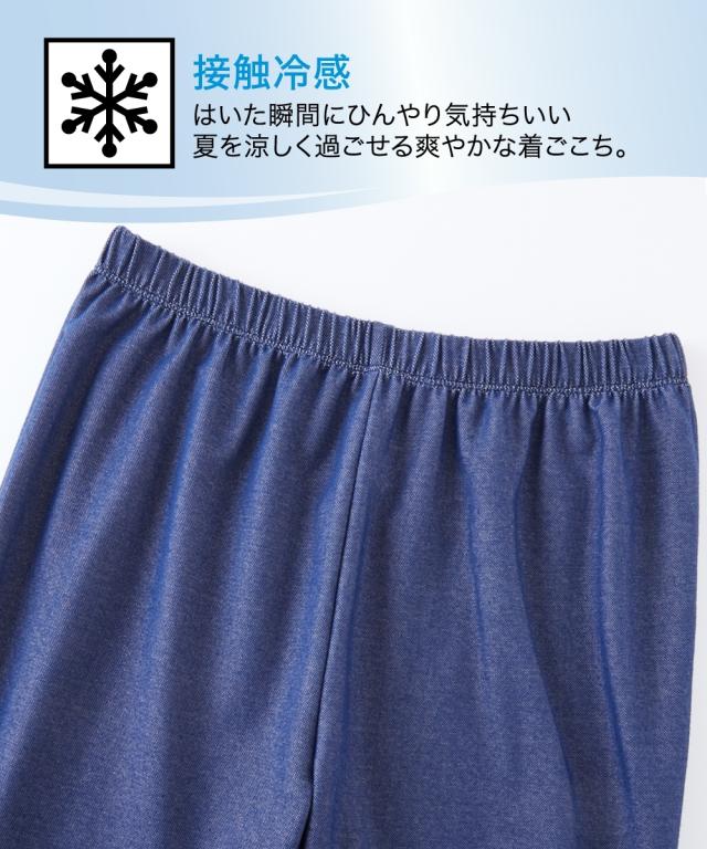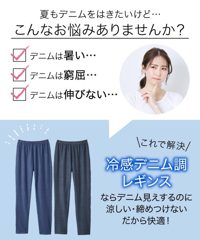 冷感ひんやりとした薄地デニム調10分丈レギンス2枚組