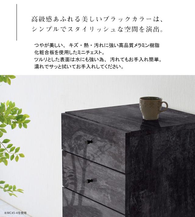 ミニチェスト キャビネット サイドボード 引出し 完成品 脚付き ローチェスト サイドテーブル ブラック シンプル おしゃれ 鏡面 リビング MC45-4 BP ☆
