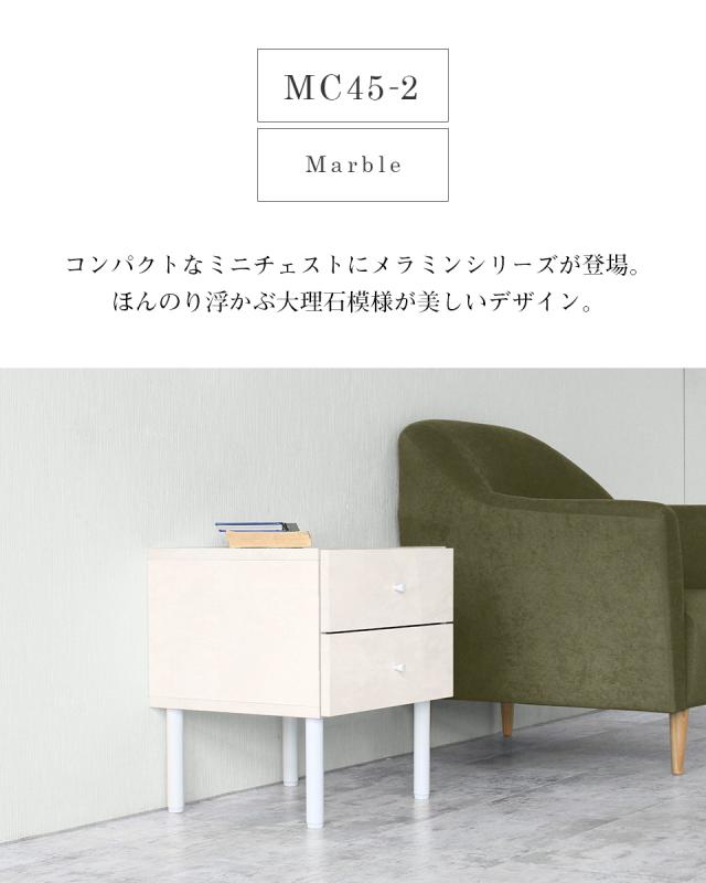 ミニチェスト キャビネット サイドボード 引出し 完成品 脚付き ローチェスト サイドテーブル ホワイト マーブル シンプル おしゃれ 鏡面 MC45-2 marble ☆