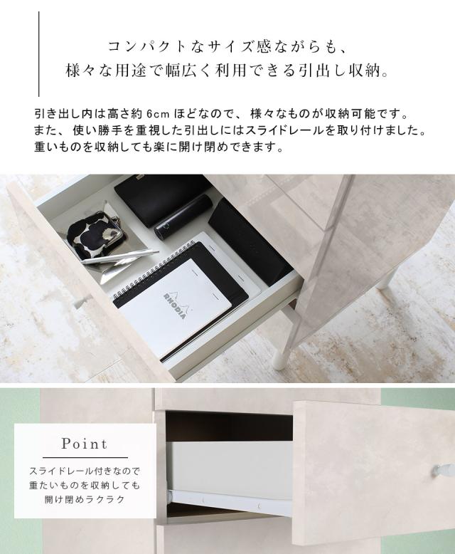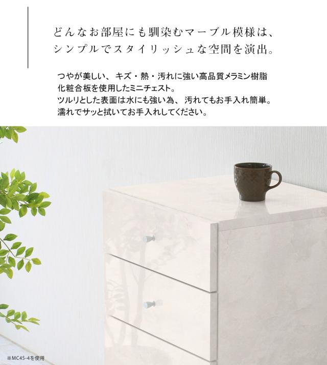 ミニチェスト キャビネット サイドボード 引出し 完成品 脚付き ローチェスト サイドテーブル ホワイト マーブル シンプル おしゃれ 鏡面 MC45-5 marble ☆