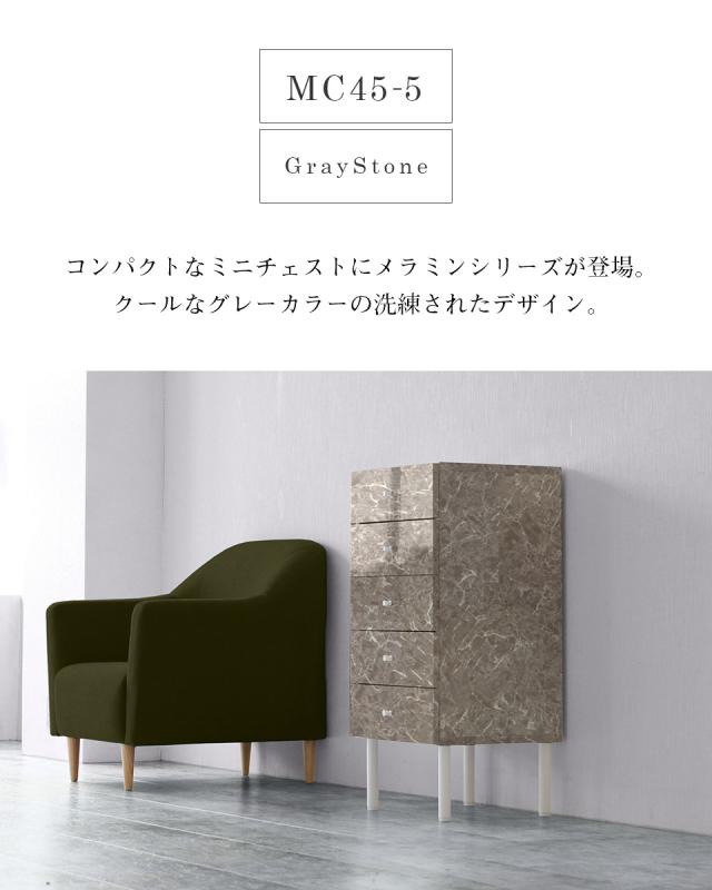 ミニチェスト キャビネット サイドボード 引出し 完成品 脚付き ローチェスト サイドテーブル グレー シンプル おしゃれ 鏡面 リビング MC45-5 graystone ☆
