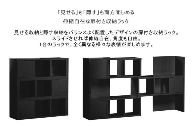 ラック 棚 オープンラック ディスプレイラック 完成品 扉付き 伸縮棚 伸縮ラック 本棚 A4 扉付 収納 日本製 black R+R-DX 90-3 ☆
