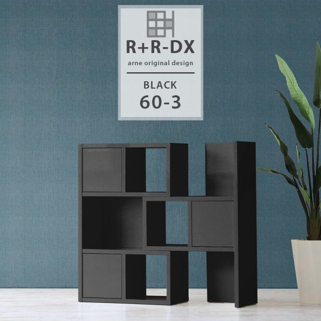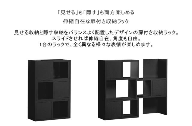 ラック 棚 オープンラック ディスプレイラック 完成品 扉付き 伸縮棚 伸縮ラック 本棚 A4 扉付 収納 日本製 black R+R-DX 60-3 ☆