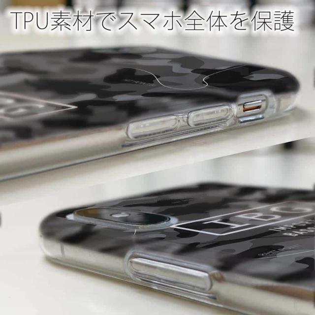 | ケースの素材について | 側面はゴムのように柔らかいTPU素材で、スマホ本体を守ります。万が一の落下でもケースが割れることがなく、耐久性の高いケースとなります。クリア(透明)のTPUケースにプリントしていますので、スマホ本体のカラーを活かしながらデザインケースが楽しめます。 |