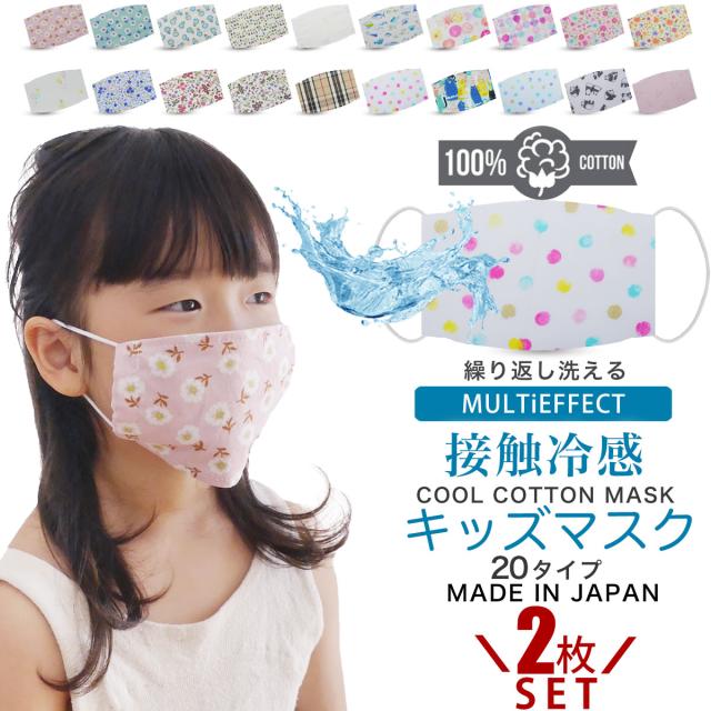 子供 マスク 2枚セット 呼吸楽 洗える 肌に優しい コットン100% 布マスク 接触冷感 日本製 選べる20色 綿100% 男女兼用 ウイルス対策