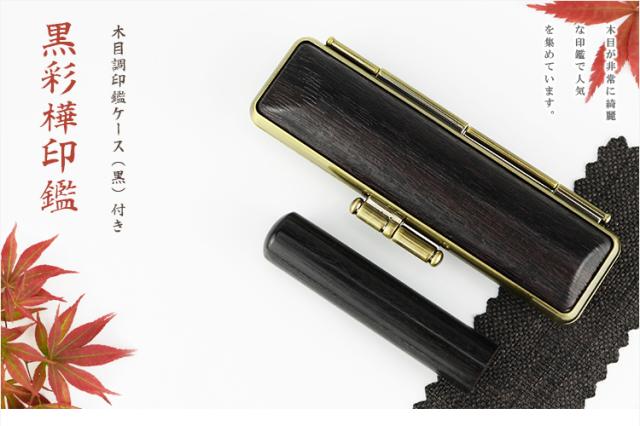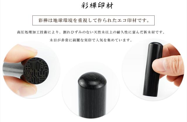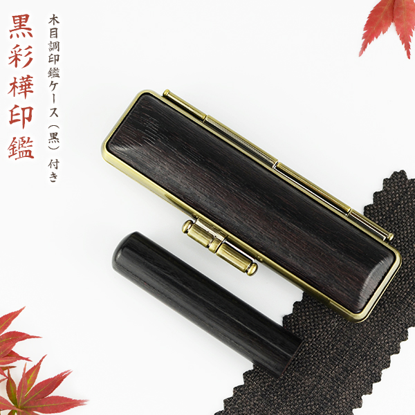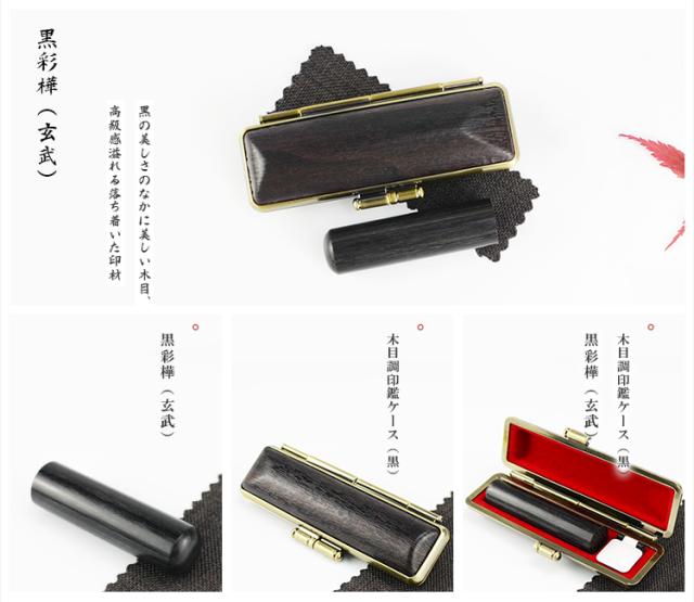 彩樺 実印 認印 銀行印 はんこ 10年保証 男性 女性 子供 判子 【黒彩樺 10.5-18.0mm選べる 木目調印鑑ケース付き】