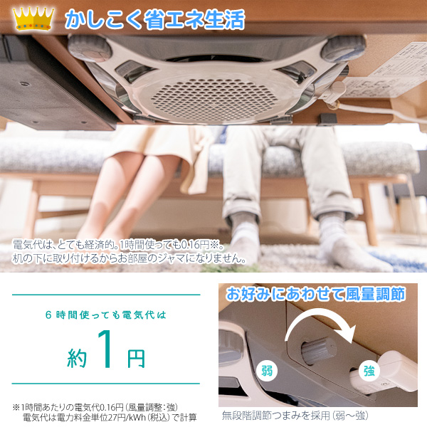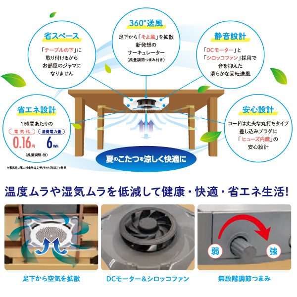 - 1時間当たりの電気代約0.16円の省エネ設計。