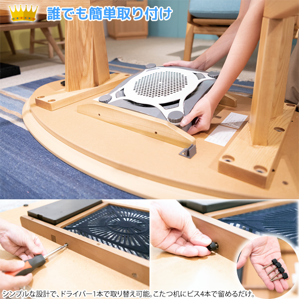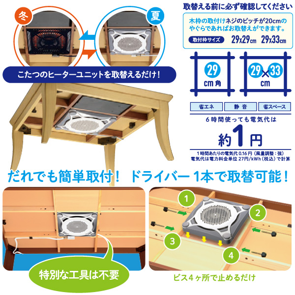 ヒーターユニットをファンユニットにドライバー1本でかんたん取り換え。