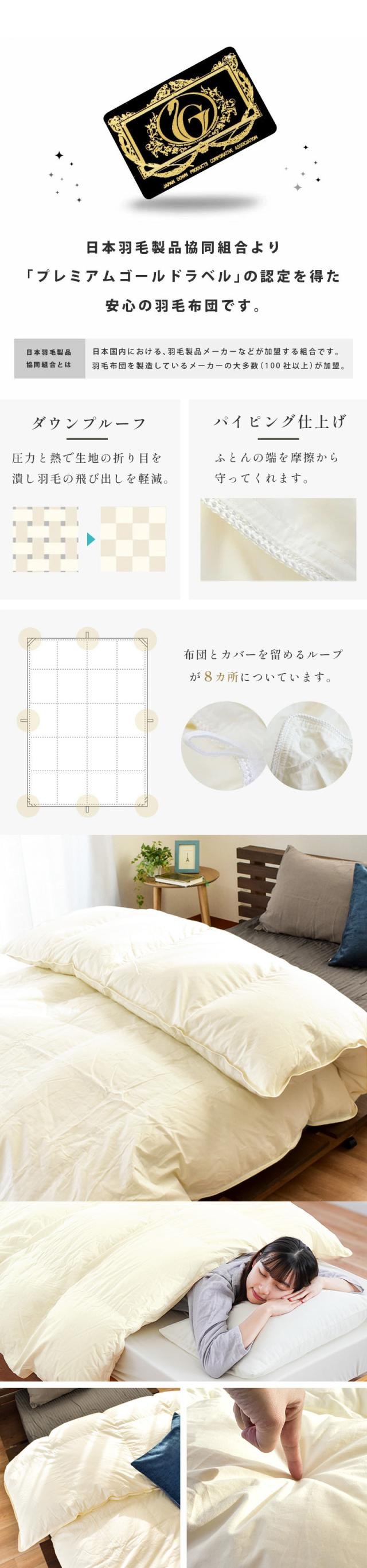 羽毛布団 二層式 グース セミダブル超ロング 440dp以上 ポーランド産 マザーグース ダウン95% プレミアムゴールド 国内洗浄 80超長綿サテン