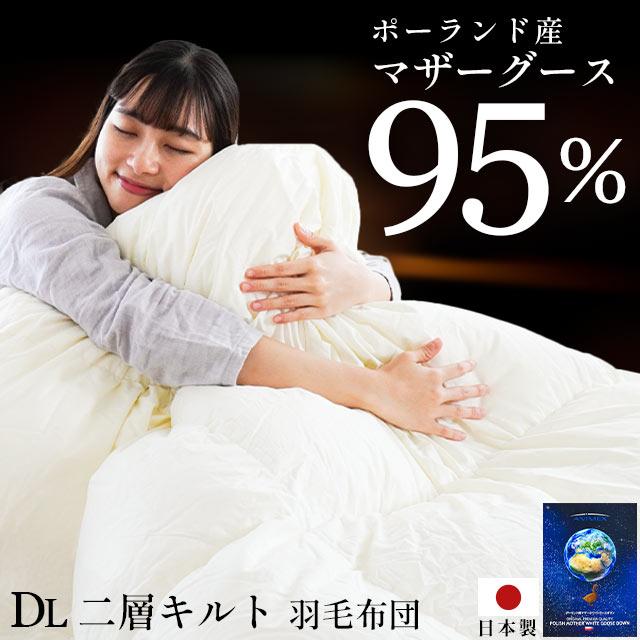 [keyword|高級 羽毛布団 マザーグース ダブル ダウン95% 二層式「4240」ダウンパワー440dp以上 ポーランド産 プレミアムゴールド 国内洗浄 80超長綿サテン 二層キルト 楽天 日本製 暖か おすすめ ラベル ランク 高級 本掛け【PR11】]