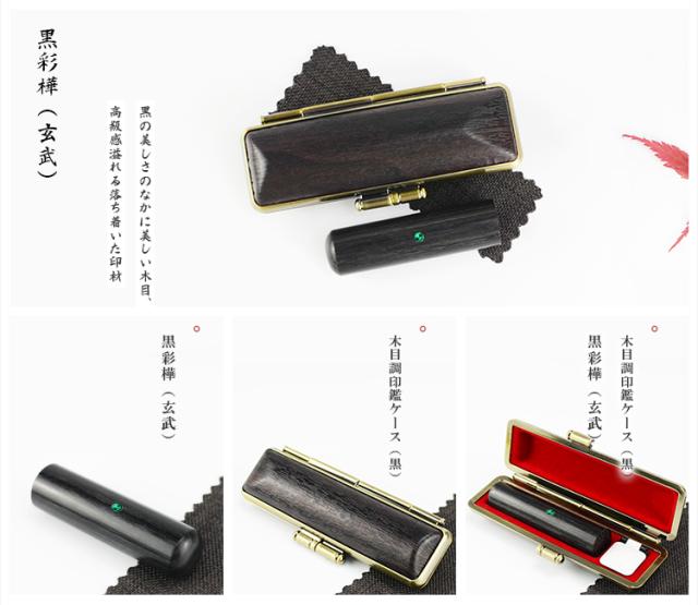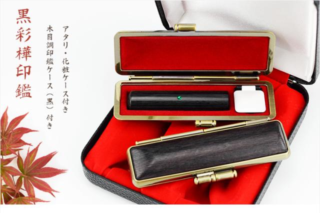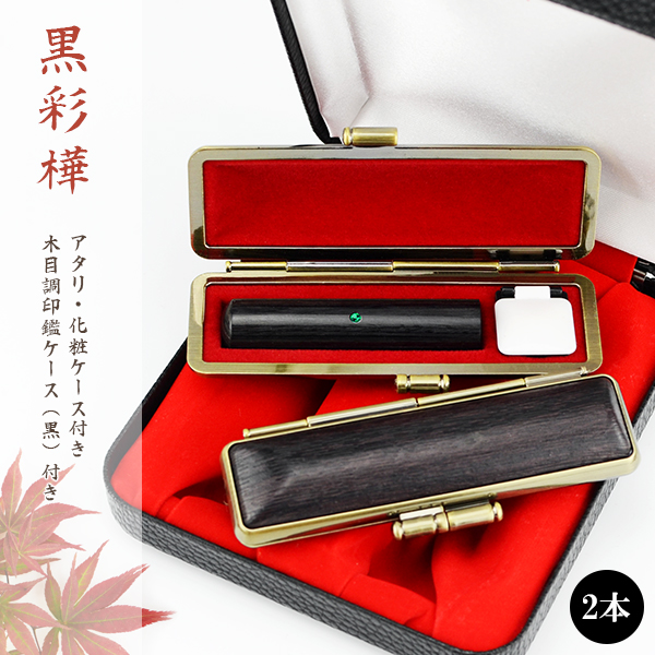 彩樺2本セット 実印 認印 銀行印 はんこ 10年保証 男性 女性 子供 判子 【黒彩樺2本セット 10.5-18.0mm選べる アタリ・木目調印鑑ケース付き 化粧ケース付き】