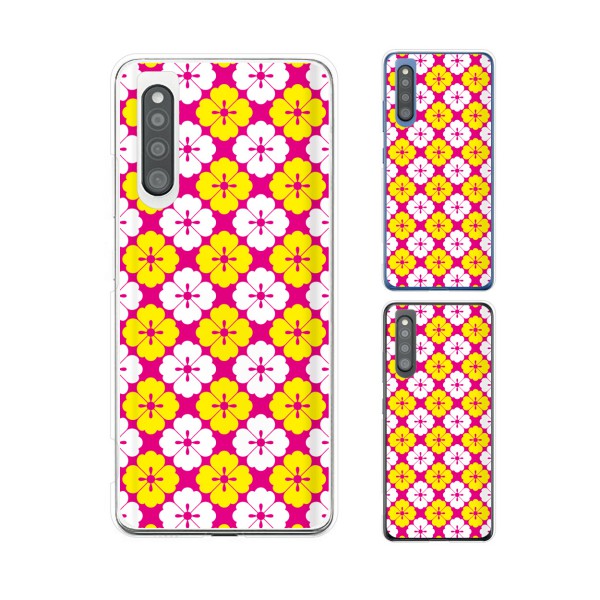 Galaxy A41 SCV48 / SC-41A スマホ ケース カバー au docomo 和柄9 花 ピンク/白/黄色