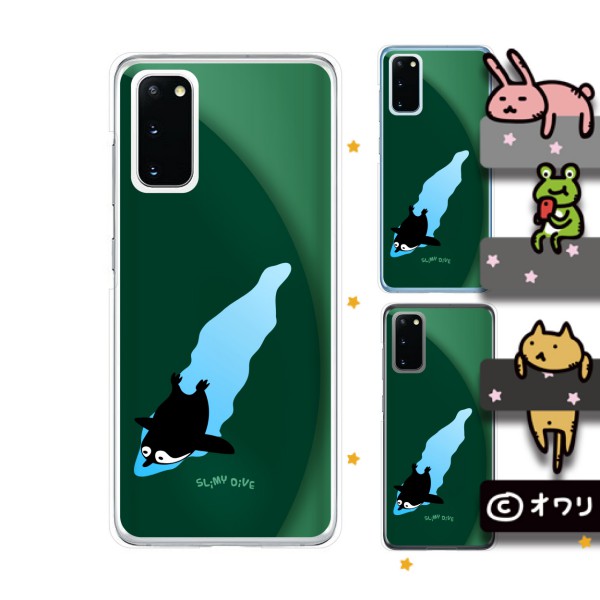 Galaxy S20 5G SCG01 / SC-51A スマホ ケース カバー au docomo オワリ 「ダイブするペンギン」 グリーン