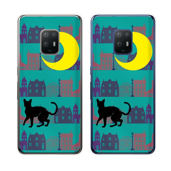 arrows 5G F-51A スマホ ケース カバー docomo 街 月 猫 グリーン