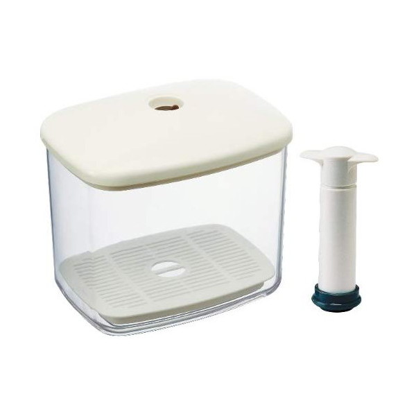 * 材質:フタ・本体/飽和ポリエステル樹脂、スノコ/ポリプロピレン、パッキン・エアーバルブ・Oリング/シリコン樹脂、ハンドル・支柱・真空ポンプ本体/ABS樹脂、ジョイント部/ポリエチレン