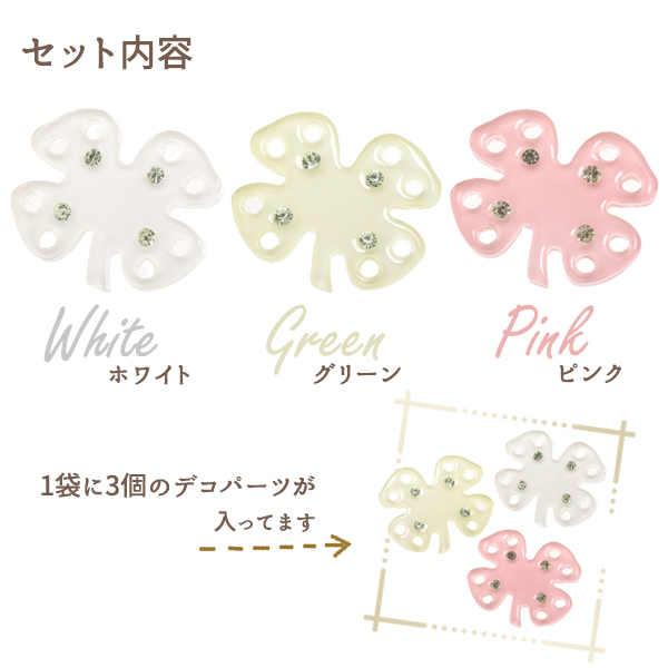 デコパーツ クローバー ミニサイズ 3個セット パステルカラー オリジナル スマホケース DIY素材 デコレーションパーツ 手作り 自作 素材
