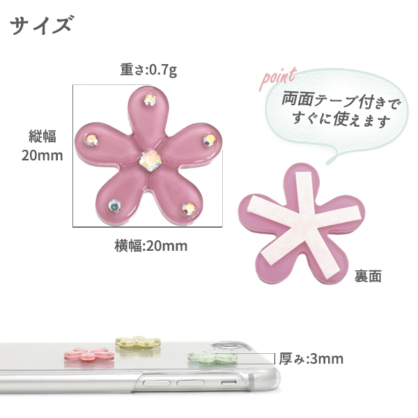 デコパーツ 両面テープ付き ミニフラワー 5枚花 Sサイズ 3個セット パステルカラー オリジナル スマホケース DIY素材 デコレーションパーツ 手作り 自作 素材