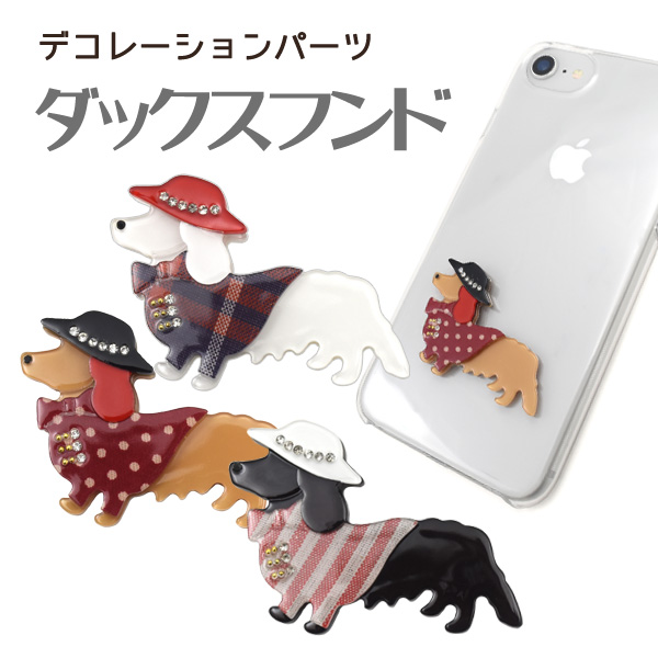 デコパーツ ダックスフンド 両面テープ付き いぬ かわいい DIY素材 オリジナル スマホケース dog 模様 デコレーションパーツ 手作り 自作 素材