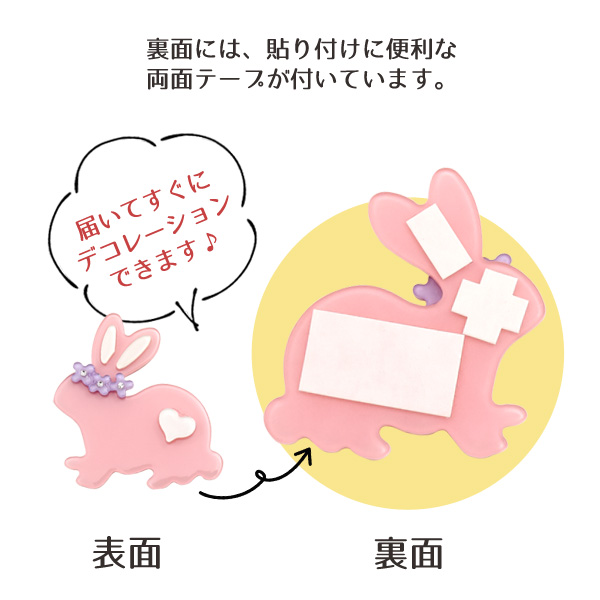 デコパーツ うさぎ ハート 両面テープ付き DIY素材 オリジナル スマホケース rabbit デコレーションパーツ 手作り 自作 素材