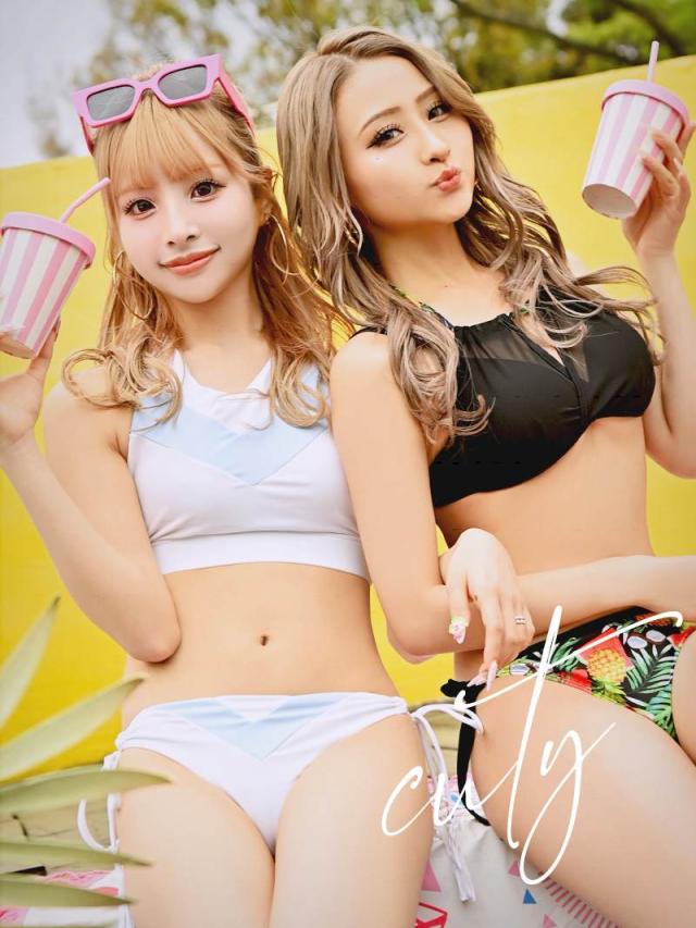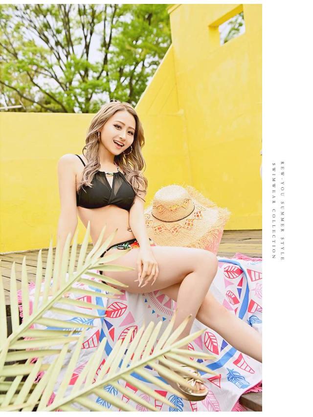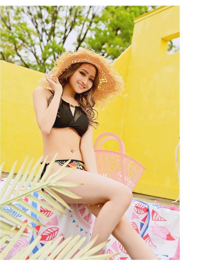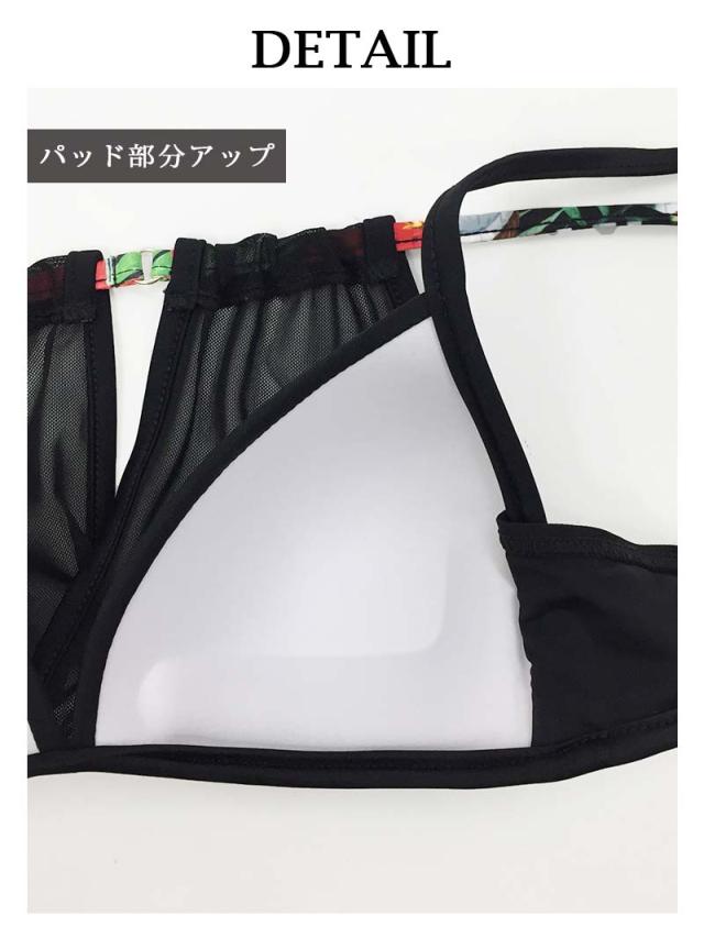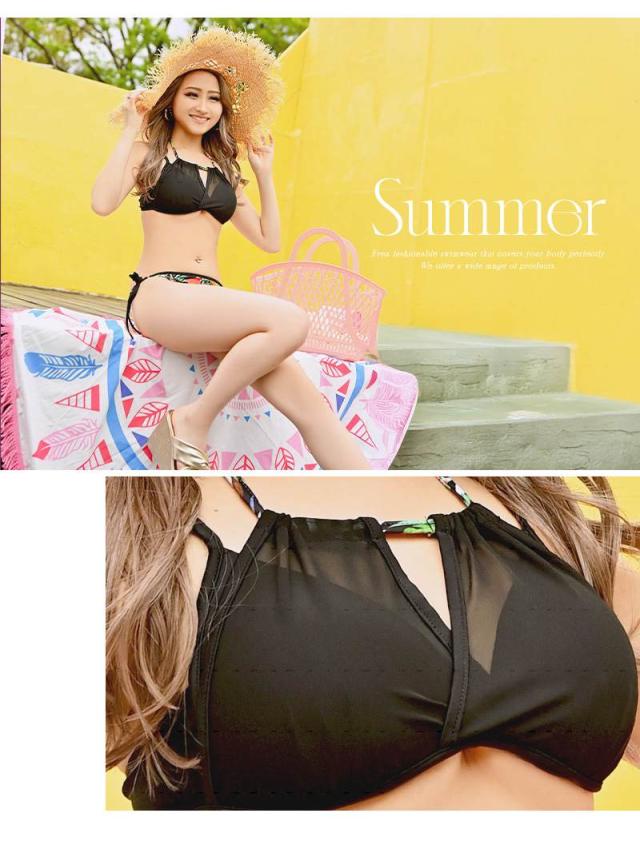 ☆ボタニカル柄がインパクトあるキャバ水着はシンプルながらも差し色のデザインが映えなブラック水着♪