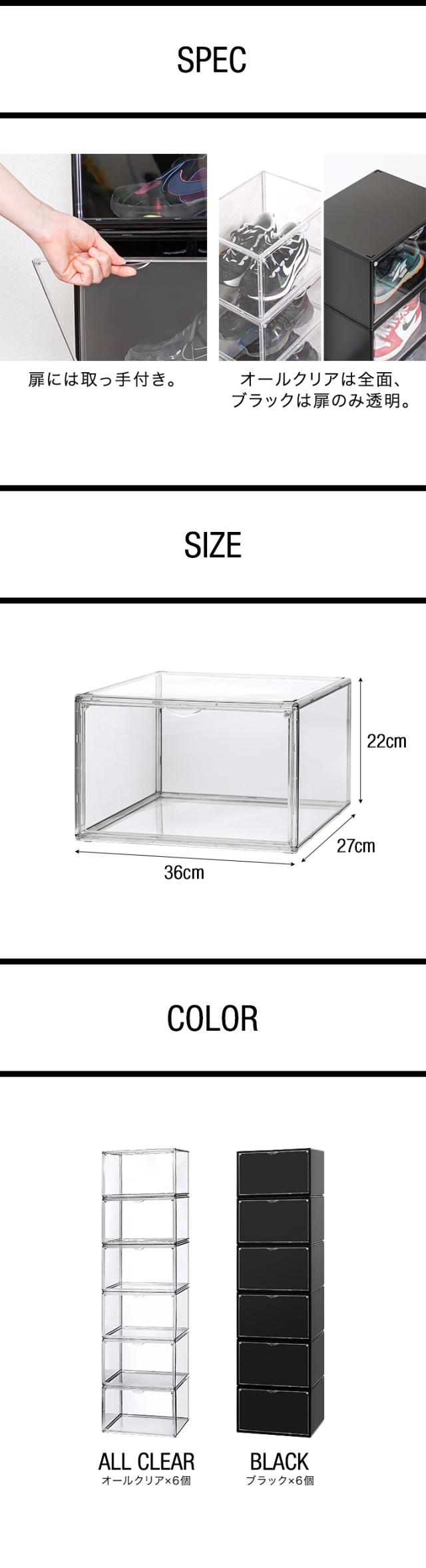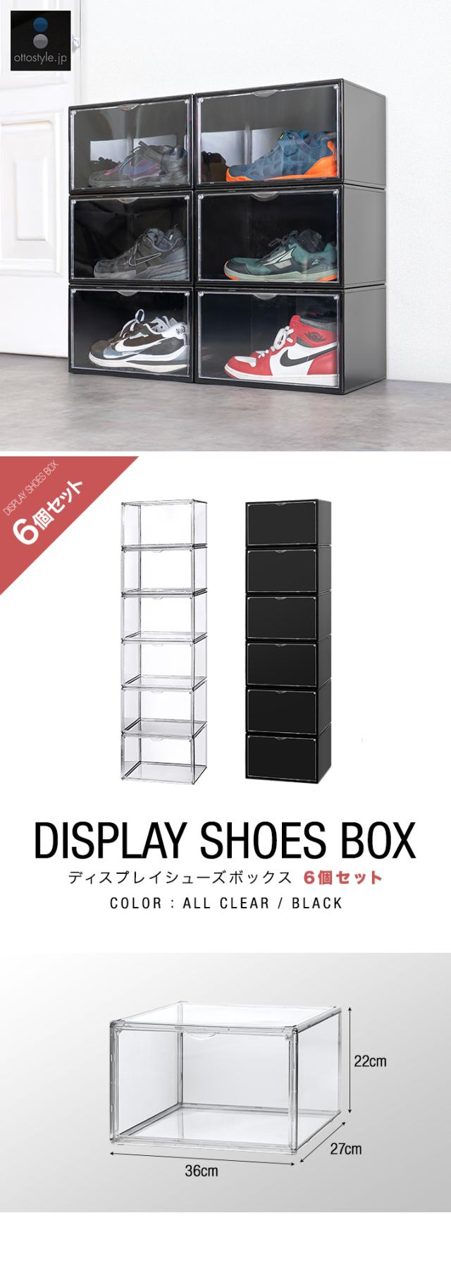 シューズボックス 6個セット 横型 ディスプレイシューズボックス 幅36cm シューズケース コレクションケース 扉付き マグネット おしゃれ インテリア 収納 シューズラック 1足 靴箱 下駄箱 スニーカー クリア 透明 1年保証 送料無料