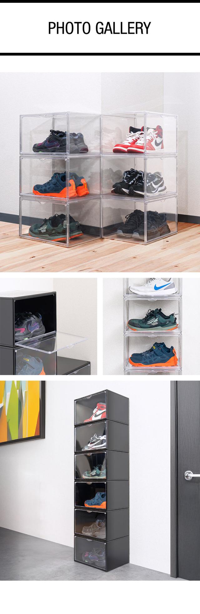 シューズボックス シューズラック スリム おしゃれ シューズボックス 下駄箱 玄関収納 靴収納 靴収納ボックス シューズケース 靴収納ラック 小物収納 収納棚 組み立て式 おしゃれ 靴収納 靴箱 玄関 省スペース コンパクト 横型 スニーカー ローカットハイカット レースアップ 男性用 女性用 メンズ レディース キッズ コレクションケース 卓上 大型 見せる収納 魅せる収納 中が見える 展示 保管 保存 趣味 ディスプレイ 硬質 透明 クリア クリアー 黒 ブラック 積み重ね スタック スタッキング SHOES CASE SHOES BOX インテリア・寝具・収納 収納家具 玄関収納 下駄箱・シューズボックス ホビー コレクション コレクションケース