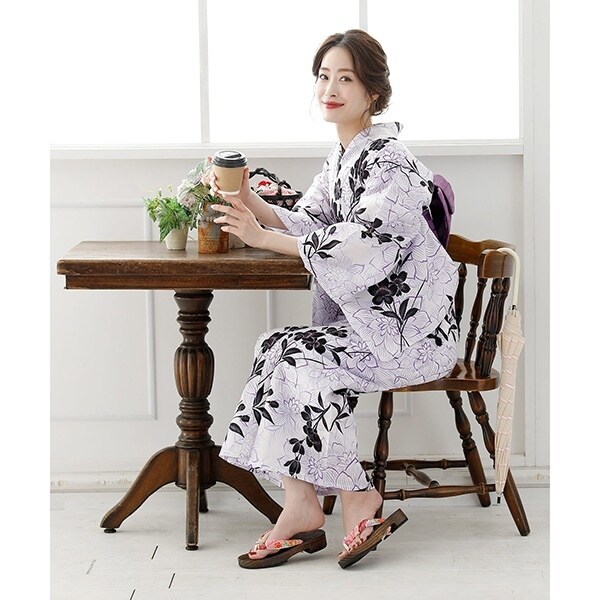 プールヴーの\15種類から選べる浴衣/3点セット【浴衣+作り帯+下駄】