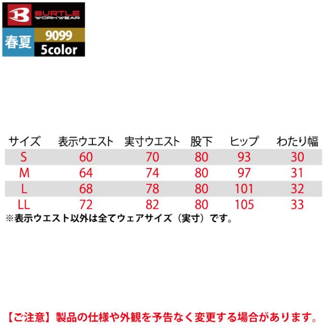 バートル BURTLE 作業服 作業着 作業ズボン 9099 レディースカーゴパンツ S-LL