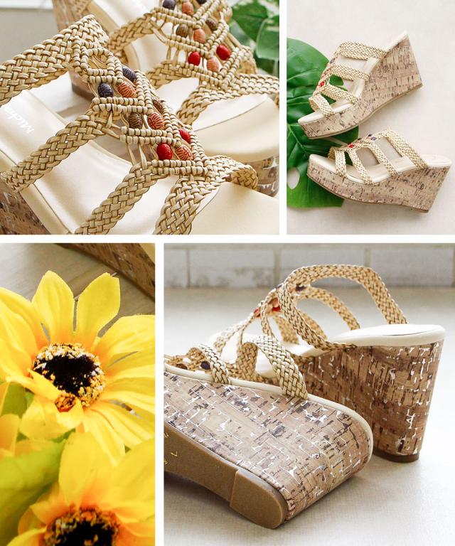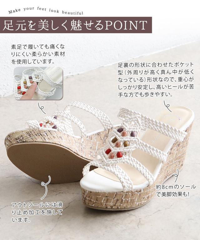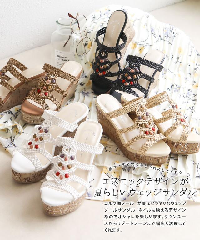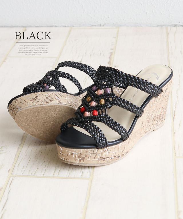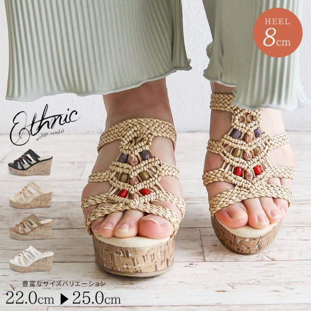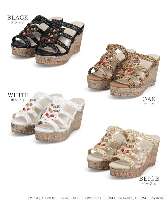 サンダル レディース 厚底 ウェッジソール ミュール 歩きやすい 履きやすい コルクソール おしゃれ 痛くない 疲れにくい ウエッジソール サンダル エスニック つっかけ 夏 リゾート ブラック 黒 ホワイト 白 2078