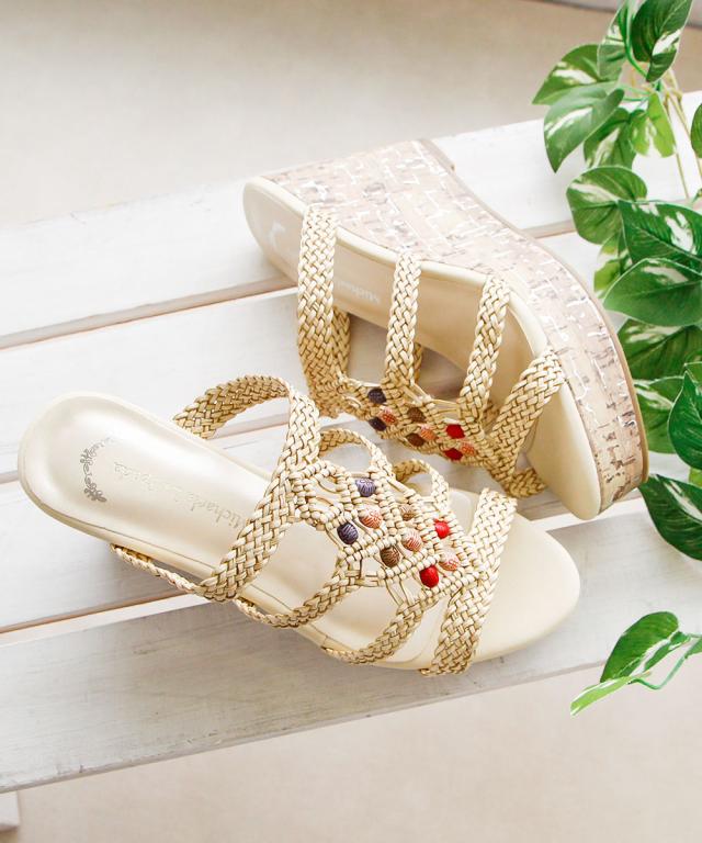 エスニックデザインが夏らしいウェッジソールサンダル。