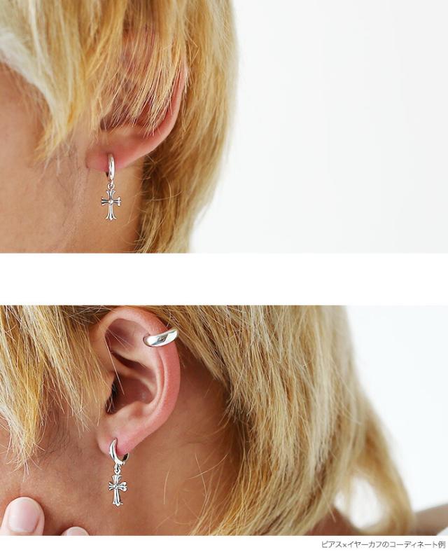 クロス ドロップ フープピアス メンズ ピアス シルバー925 アクセサリー 十字架 十字 シルバーピアス 片耳用 (1個売り)
