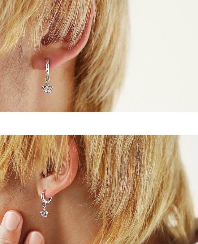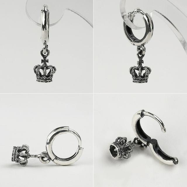 クラウン ドロップ フープピアス メンズ ピアス シルバー925 アクセサリー 王冠 シルバーピアス 片耳用 (1個売り)