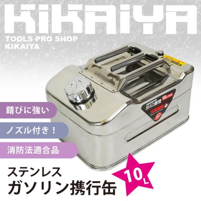 ガソリン携行缶 10L 横型 高級ステンレス SUS304 ガソリンタンク ジェリカン 消防法適合品 KIKAIYA
