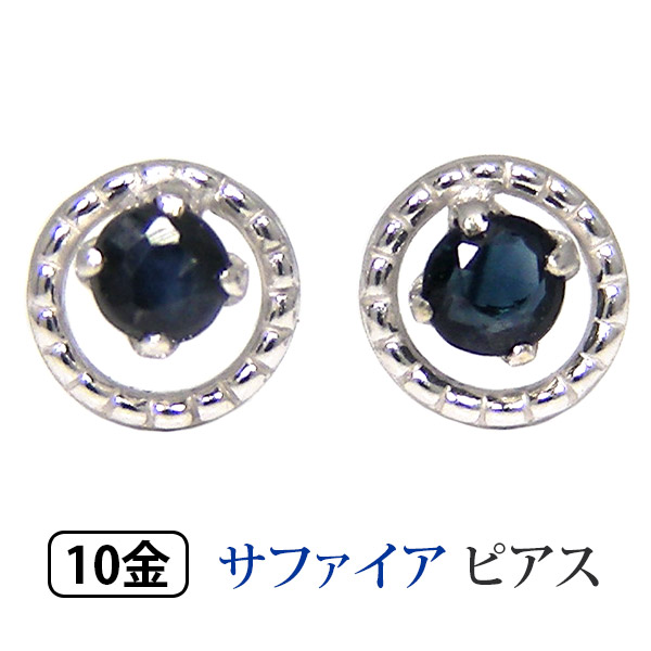 ホワイトゴールド ブルー 青 ミル打ち ミルグレイン 丸 10金 10k 天然石 9月 誕生石
