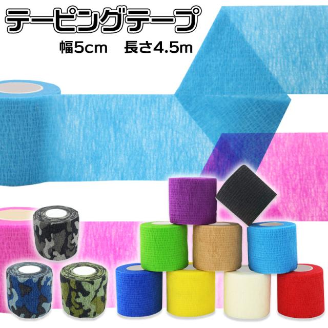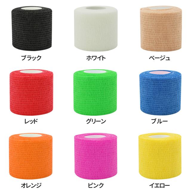 テーピングテープ 伸縮テープ キネシオロジーテープ キネシオテープ グリップテープ テーピング 包帯 幅5cm 50mm 長さ4.5m 黒 白 全16色
