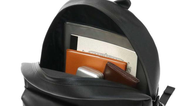 スコッチガードによる撥水・撥油加工の型押し革と、革シボのような柄の止水ファスナーテープを組み合わせたレザーカジュアルシリーズ『GUARD』のデイパック。シリーズの特徴であるファスナーは見た目に面白さをプラスするとともに機能性も高め、レザー使いでありながら雨天時の外出も安心して行えます。