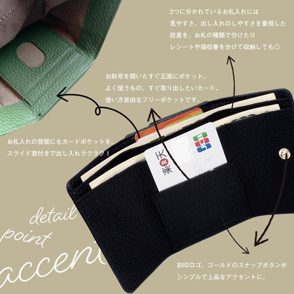 - 探してた色が、長財布売り切れで、見つかったのが三つ折りの財布です。 仕事の時にズボンのポケットに入れるのに丁度良いです。