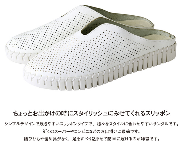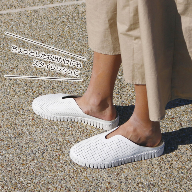 シンプルデザインで履きやすいスリッポンタイプで、様々なスタイルに合わせやすいサンダルです。夏のちょっとしたお出かけにもスタイリッシュに見せてくれます。ふかふかのインソールは疲れにくい。ソールは深い溝で柔らかく屈曲性抜群です。
