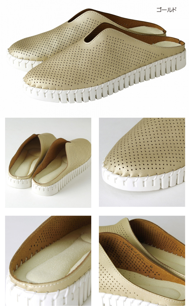 スリップオンシューズ(23-23.5サイズ/24-24.5cm)RNLZ1039L【spice スタイリッシュ スリッポン サンダル ふかふか 夏 涼しい シューズ ゴールド シルバー】