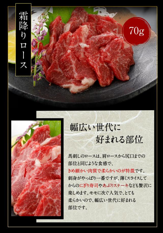 - 3度目くらいの購入です!家族で馬刺しが好きなので、コロナ禍という事もありお祝い事のときにお酒と共にいただいてます!解凍の仕方の説明もあり親切です。付属の馬刺しのタレもおいしいです。