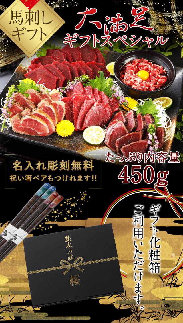 馬刺し 馬肉 熊本 ギフトスペシャル 霜降り 桜ロースセット 450g 名入れ 有料祝い箸ペア ※北海道、沖縄、離島は別途追加送料 お歳暮