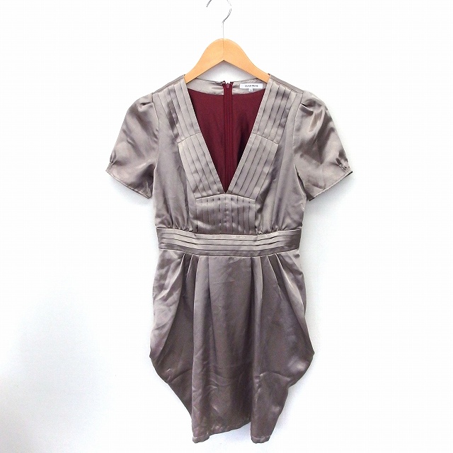 【中古】ギルドプライム GUILD PRIME ワンピース ドレス シャーリング 光沢 半袖 ひざ丈 34 ゴールド /FT32 レディース