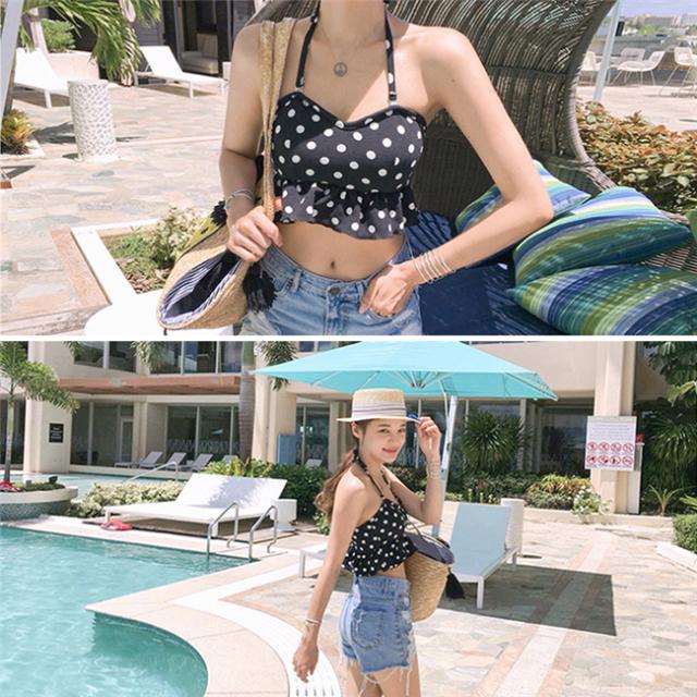 ・ドット柄がとってもキュートなワイヤー入りホルターネックのセクシーなタンキニです。