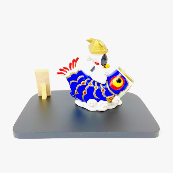 スヌーピーの五月人形が登場!! コンパクトで飾りやすいSNOOPY鯉乗り人形。 セット内容 陶器人形・木札・台・屏風