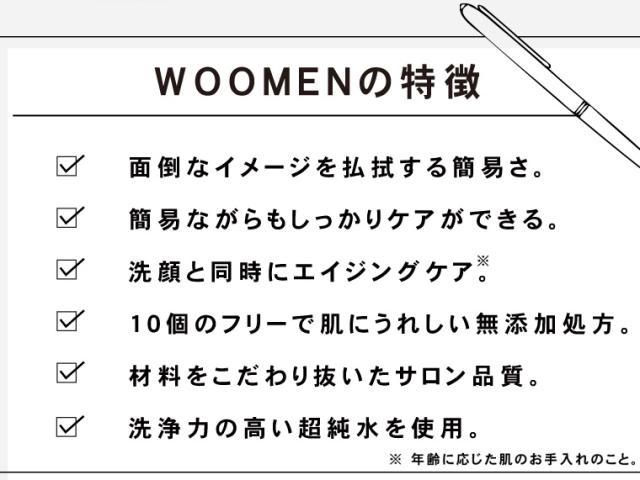 | メイドインジャパン!男性用基礎化粧品「ウーメン」シリーズ一覧 | ||
