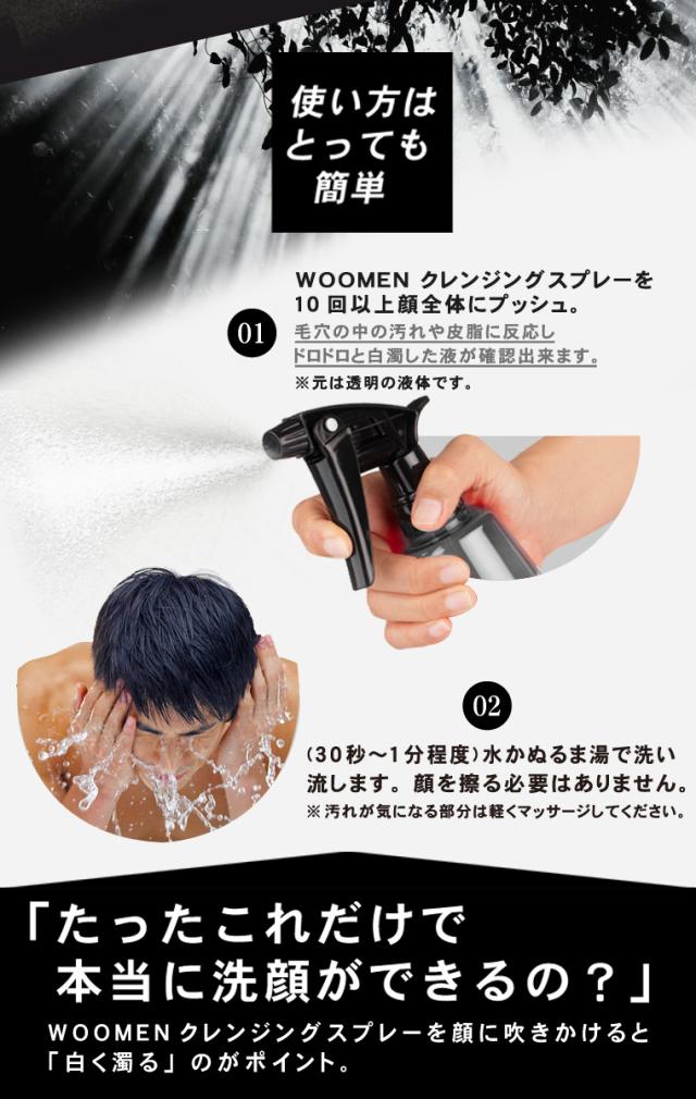 人気のメンズ用スプレー洗顔「WOOMENクレジングスプレー」の