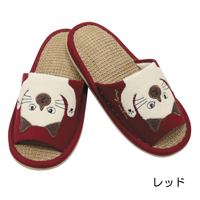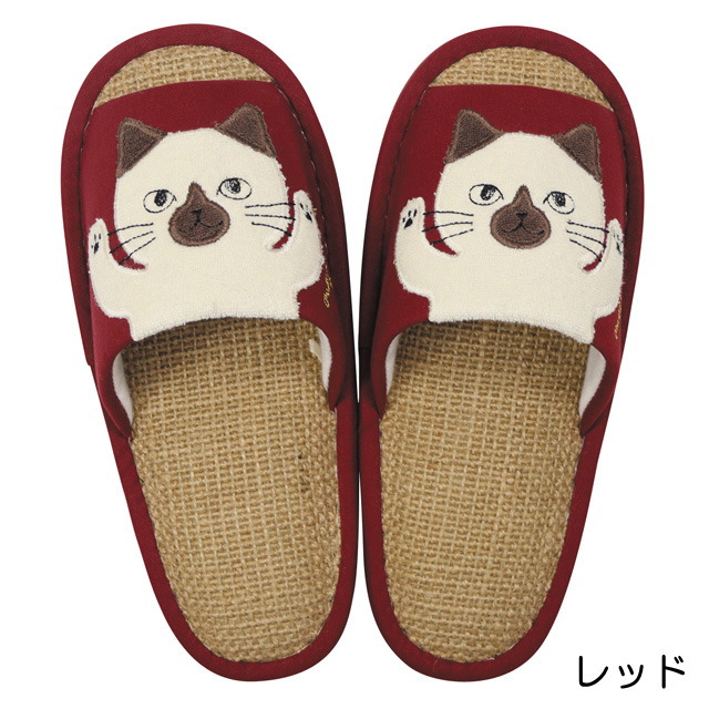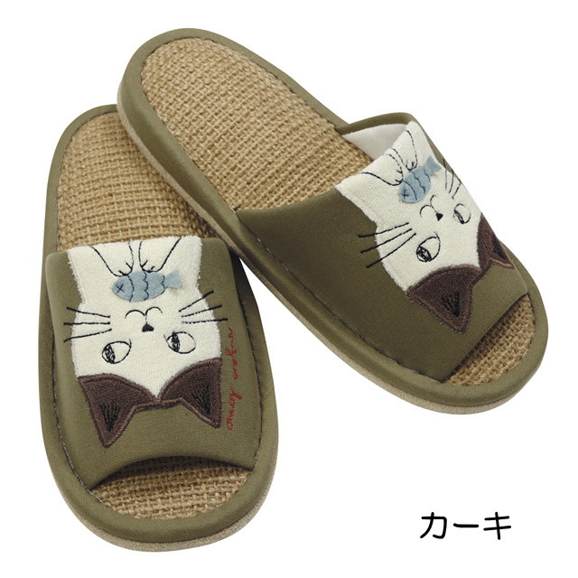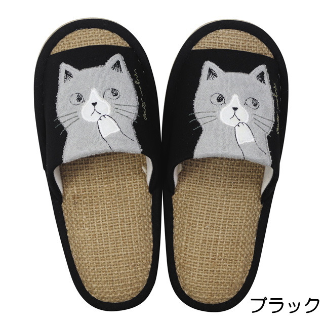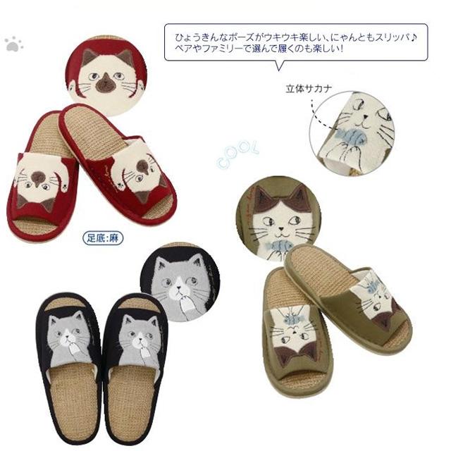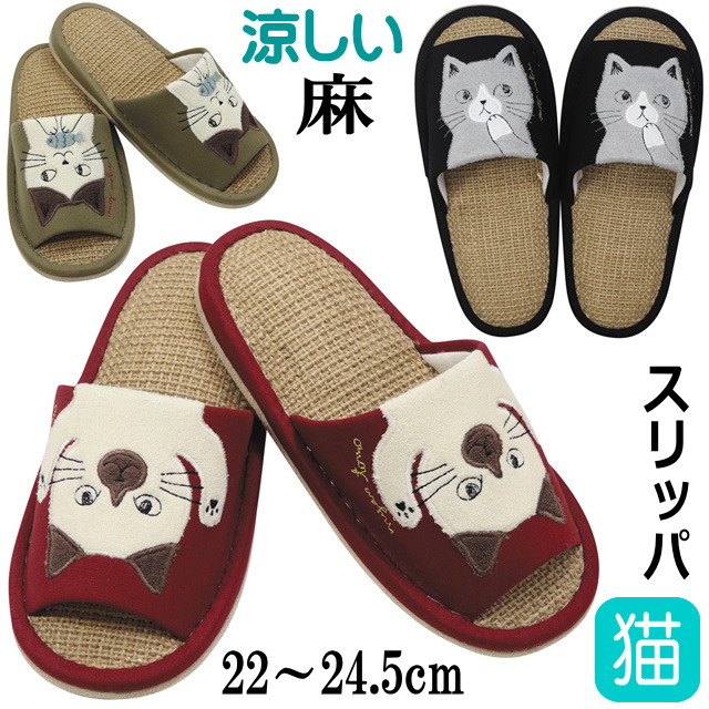 スリッパ 猫 ノアファミリー にゃんとも 猫柄 麻 夏用 クールタイプ 涼しい 蒸れない 素足 来客 自宅 職場 室内 ルームシューズ ブラック カーキ レッド アニマル 猫雑貨 猫グッズ レディース 音がしない カジュアル かわいい おしゃれ ギフト プレゼント【 誕生日 】