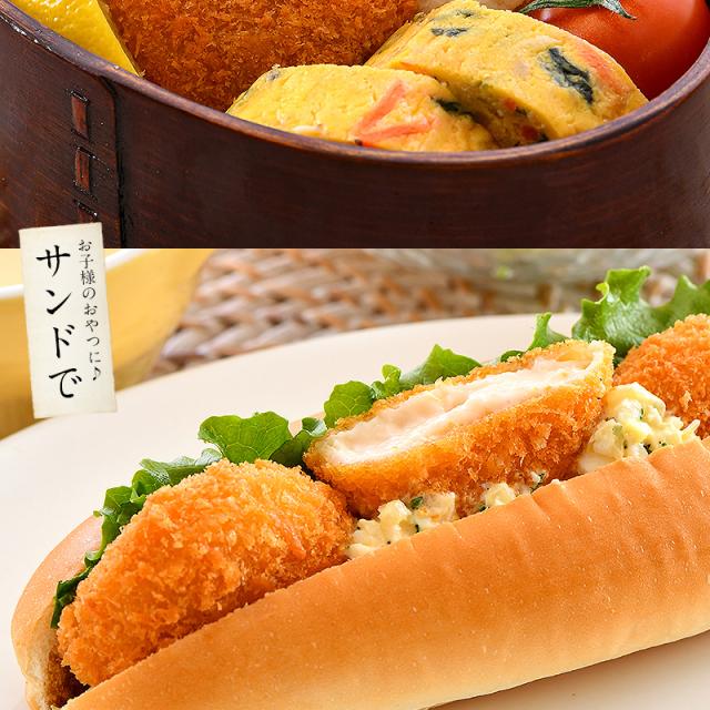 紅ずわいがにほぐし身、小麦粉、植物油脂、乳等を主要原料とする食品、牛乳、バター、砂糖、かにエキス、食塩、乾燥スープ(コンソメ)、かに味噌、たん白加水分解物、酵母エキス、香辛料、衣(パン粉、でん粉、小麦粉、コーンフラワー、植物油脂、大豆粉)/増粘剤(加工でん粉、ヒドロキシプロピルメチルセルロース、増粘多糖類)、調味料(アミノ酸等)、乳化剤、香料、着色料(アナトー、カラメル)、(一部にかに・小麦・乳成分・大豆・鶏肉を含む)
