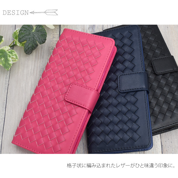 ラティス(格子)デザインがひと味違った印象になる、男女共にお使いいただけるレザーデザインの手帳型ケースです。